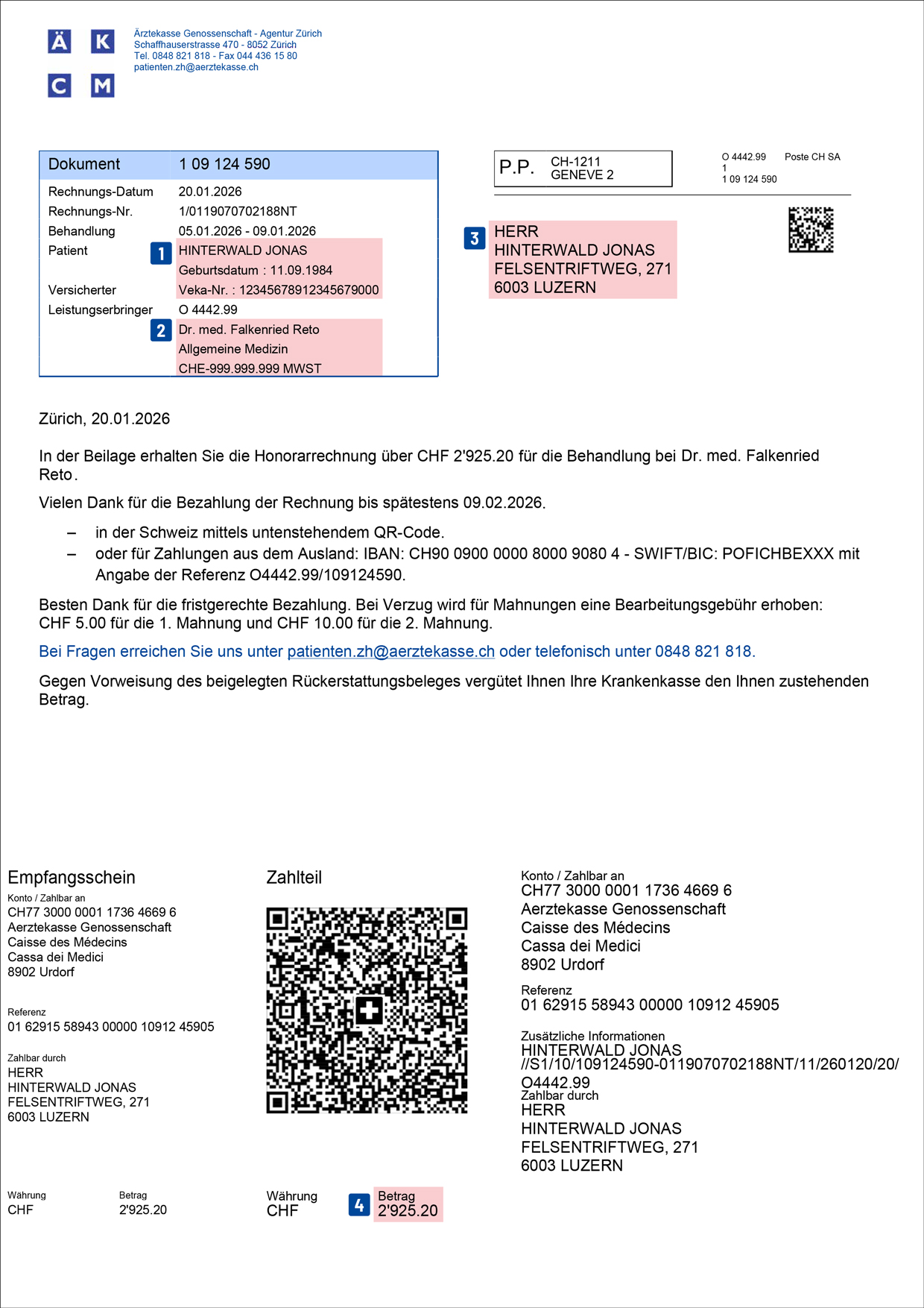 | 1. | Rechnungssteller: Ärztekasse oder Arzt, der Leistungen in Rechnung stellt. | |
